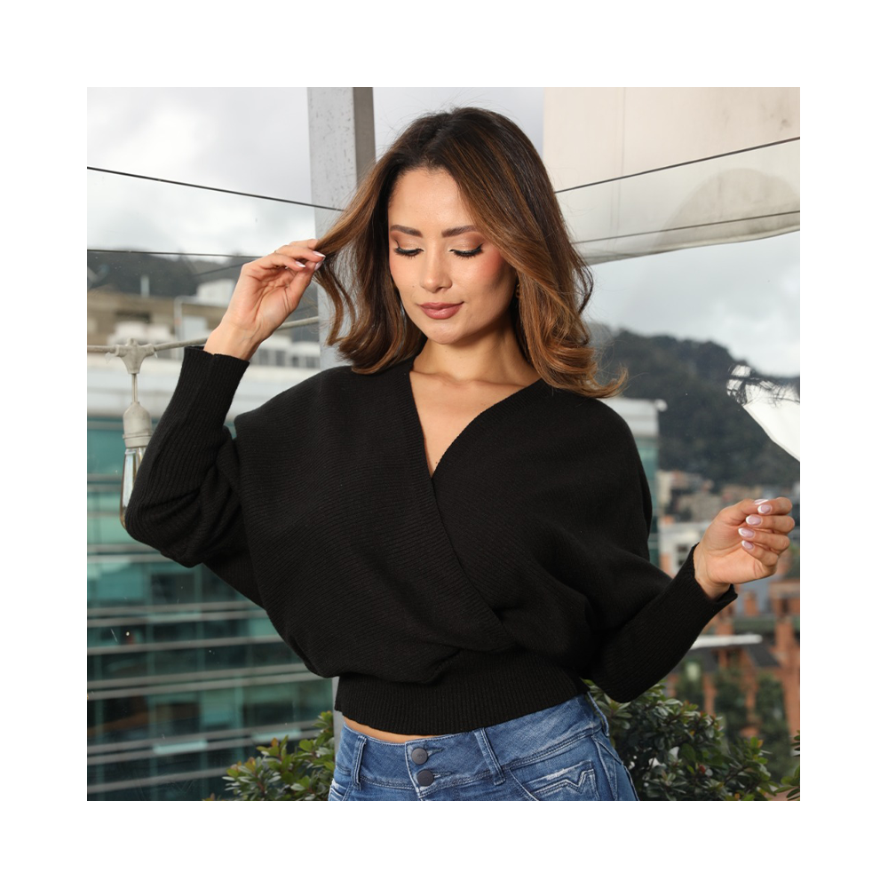 SWEATER MANGA LARGA, ESCOTE CRUZADO