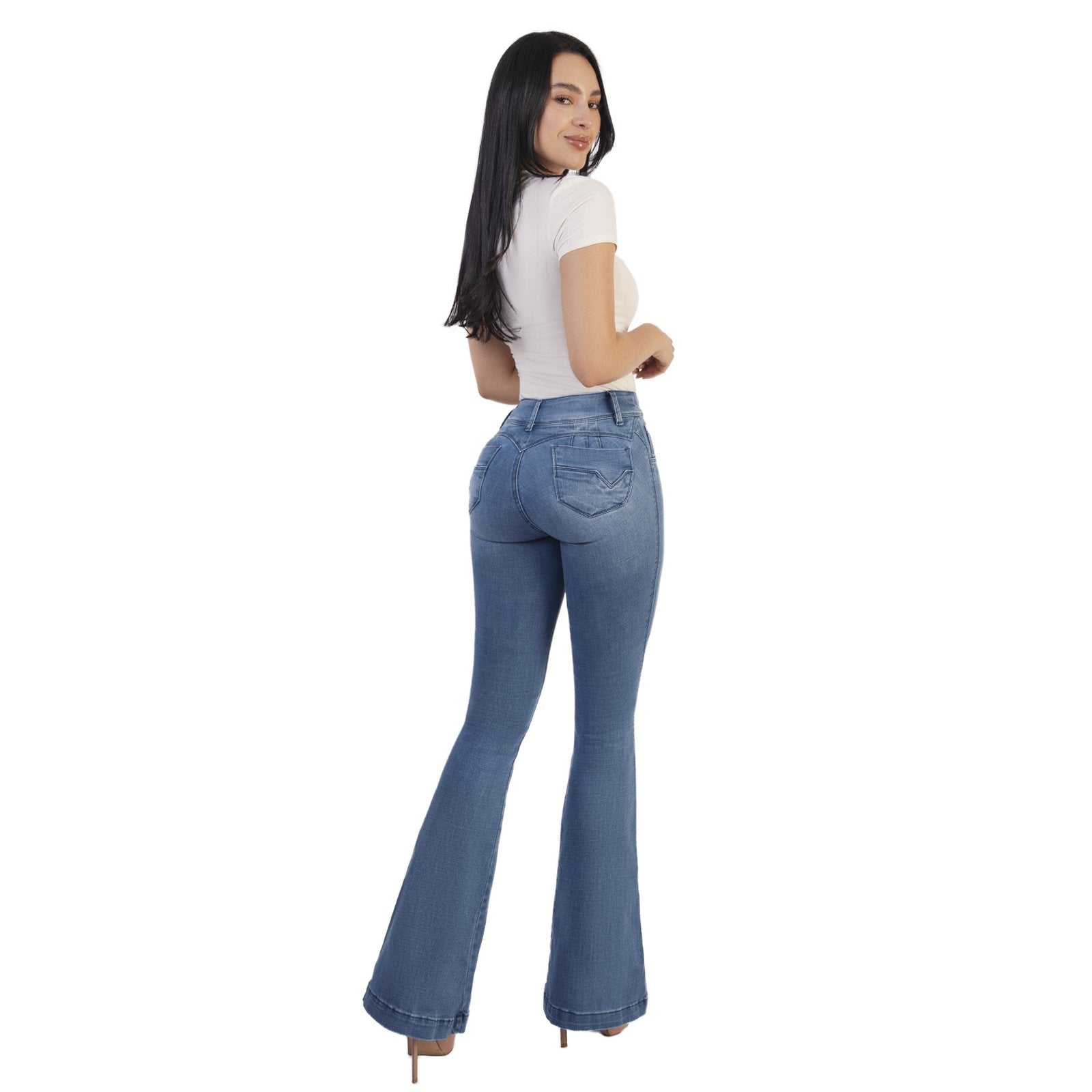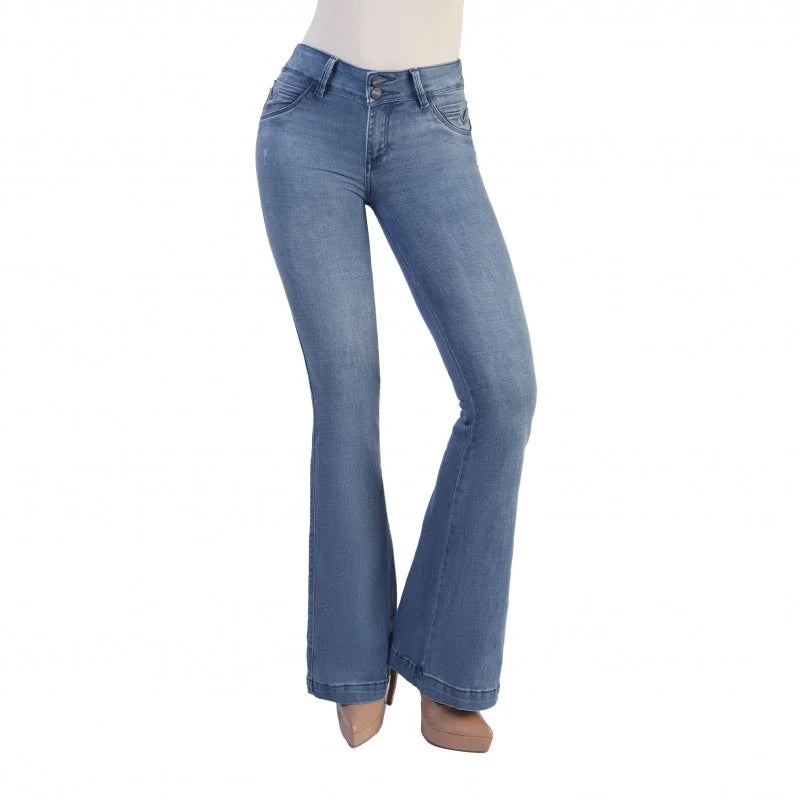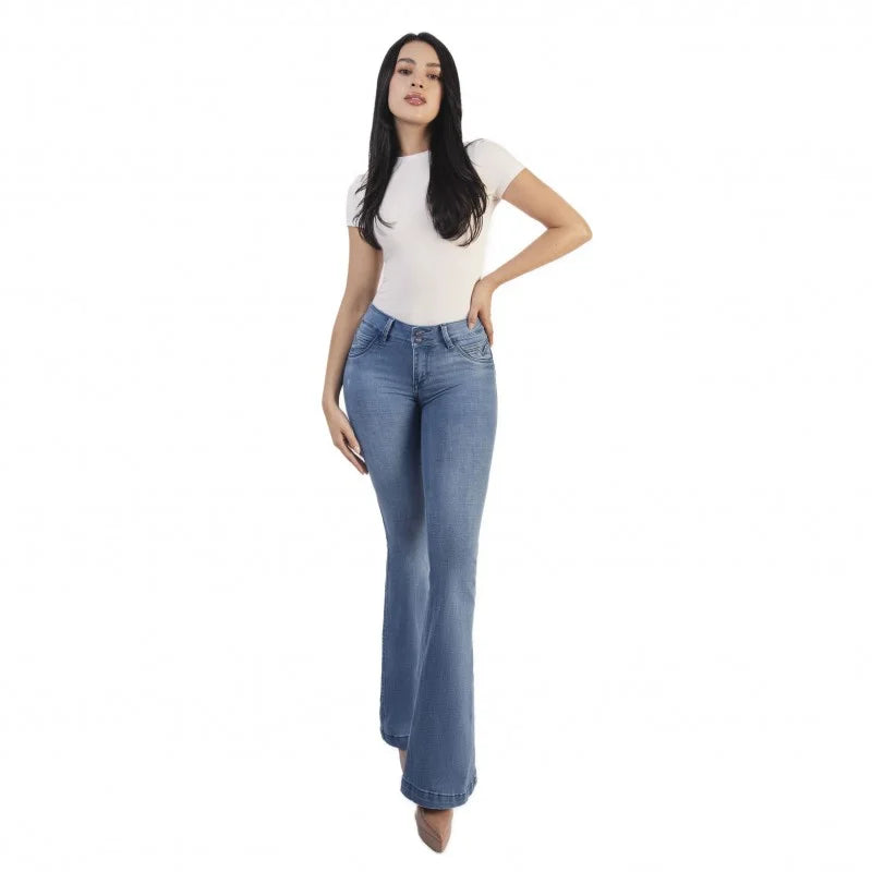 TIRO MEDIO, EXTRA REALCE, CON BOLSILLOS, TELA DENIM LICRADO PREMIUM, AZUL CLARO